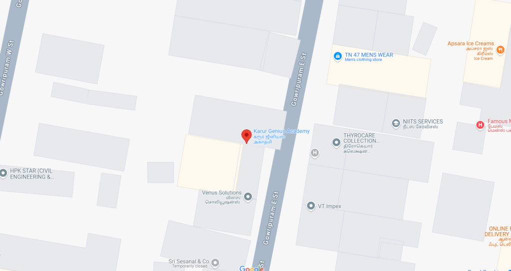 Karur Genius Academy, 50/22, Gowripuram East, Karur, Tamil Nadu – 639001